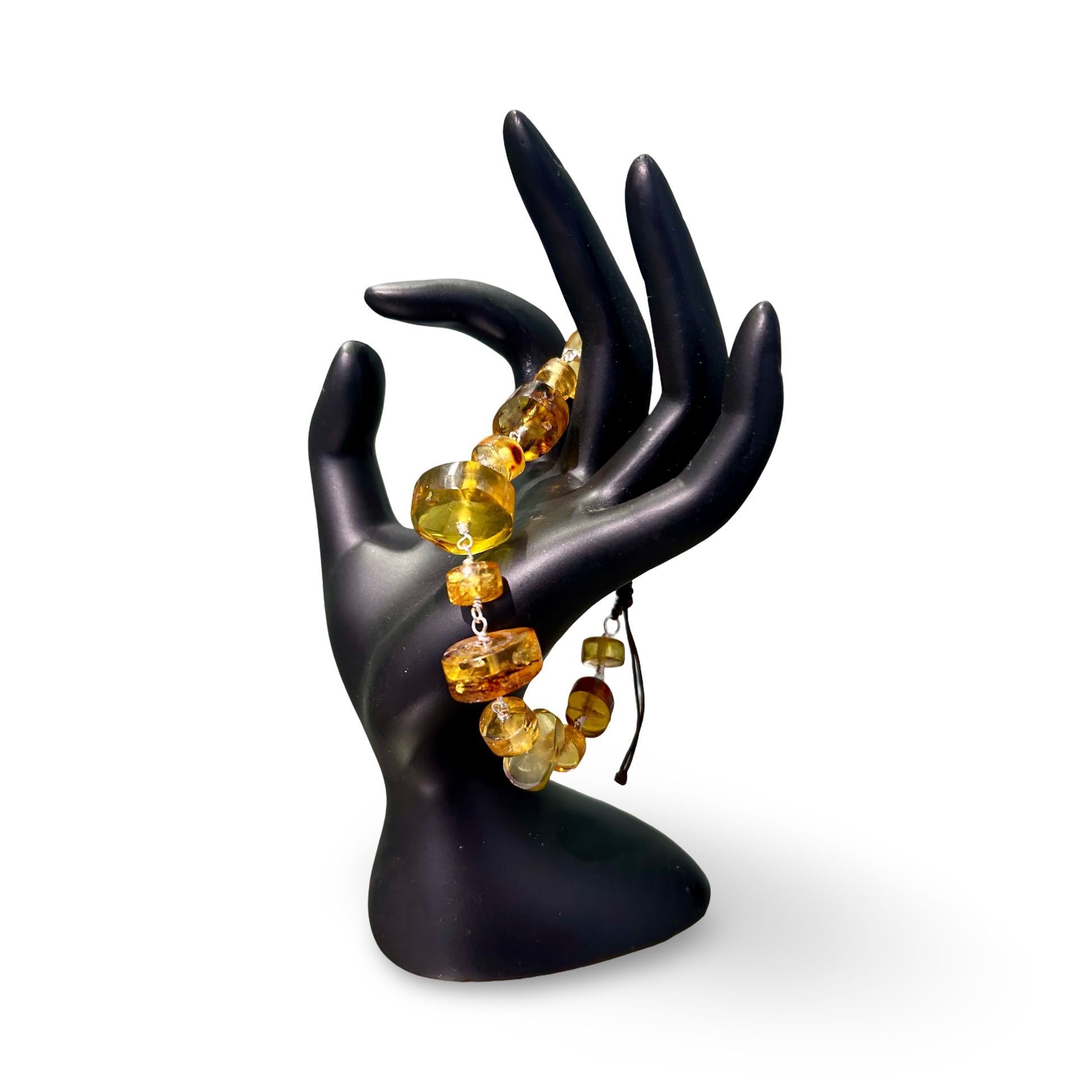 Each bracelet is handmade, showcasing the unique golden hues and natural inclusions of Amber, making every piece one-of-a-kind.