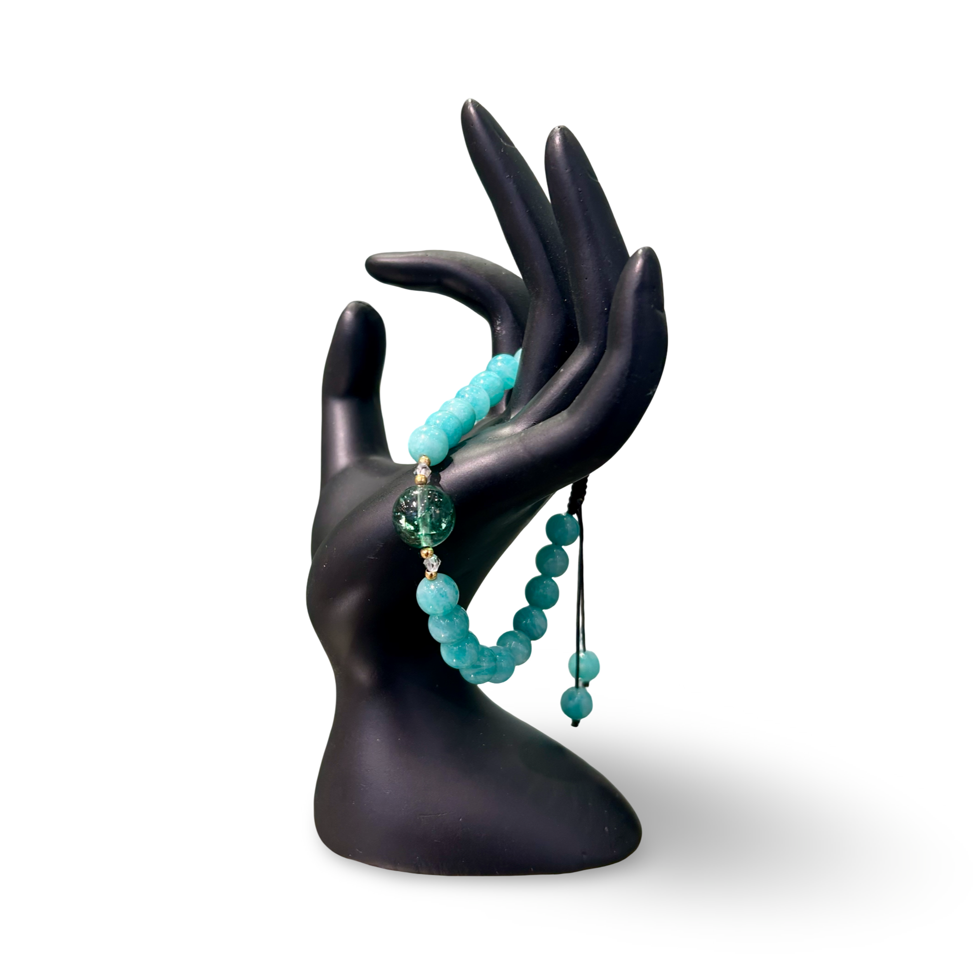 Amazonite with Dyed Quartz Adjustable Bracelet – 8mm Beads