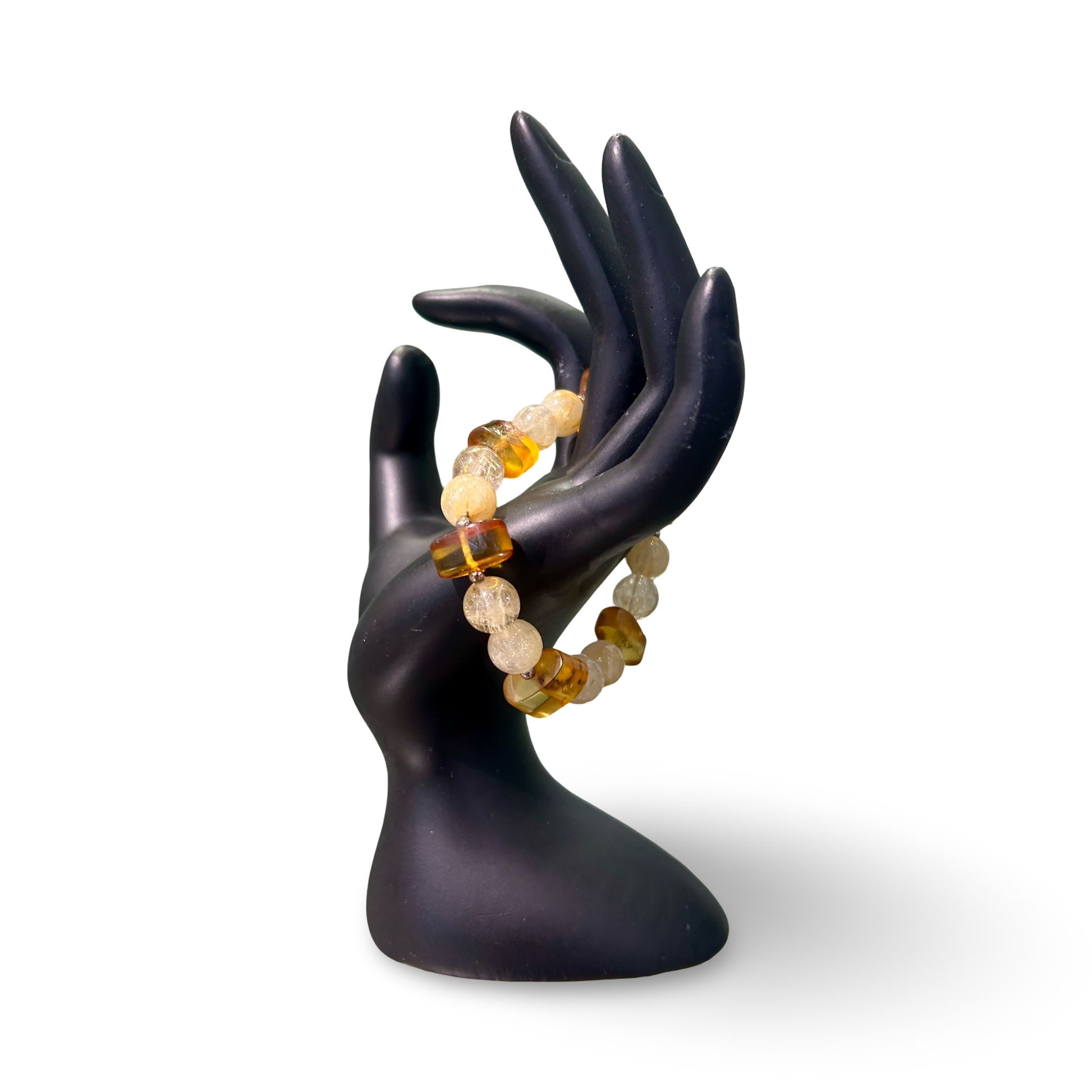 Amber & Golden Rutilated Quartz Elastic Bracelet – 10mm