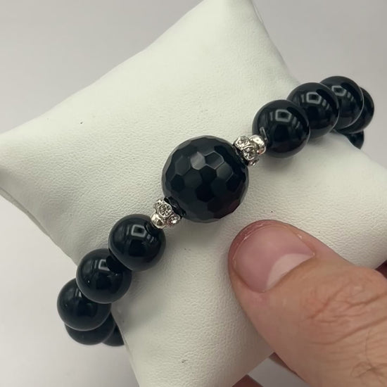 Black Sardonyx Elastic Bracelet | 10mm Beads | Handmade Gemstone Jewelry