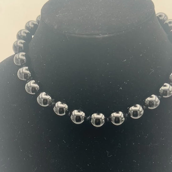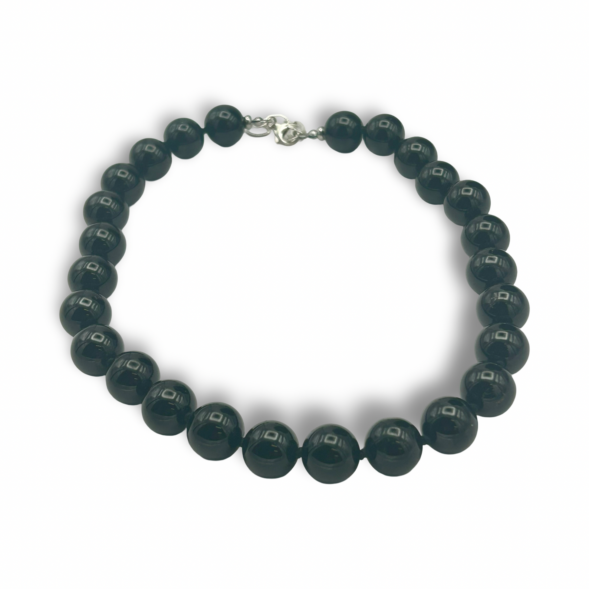 This striking handmade Black Tourmaline necklace features 14mm polished gemstone beads accented with sterling silver, radiating grounding and protective energy. Known as a powerful stone for shielding against negativity, Black Tourmaline is prized for its deep black color and natural shine.
