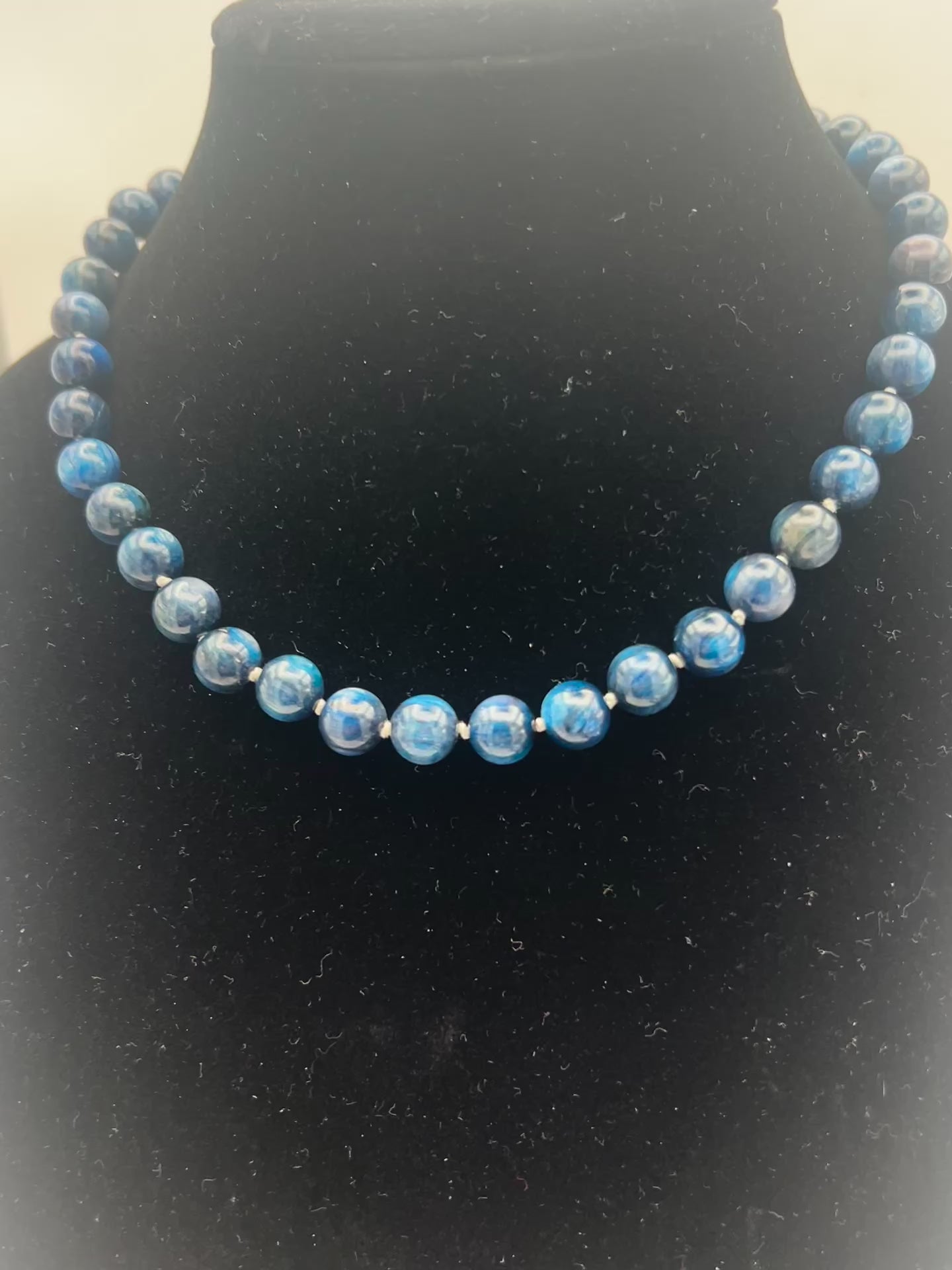 Blue Kyanite Necklace 10mm Beads | 18 Inches | Handmade Crystal Jewelry