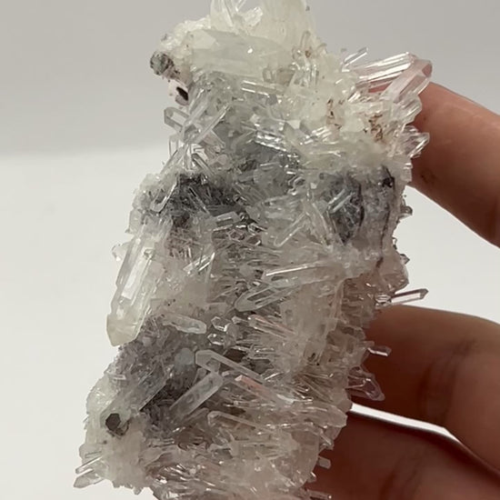 Harness the rare energy of this Colombian Lemurian Needle Cluster, a natural quartz crystal prized for its clarity, striations, and high vibrational energy. Weighing 156 grams and measuring 4 inches by 2.6 inches, this cluster features multiple Lemurian “needles,” each carrying unique energetic imprints for spiritual growth and meditation.