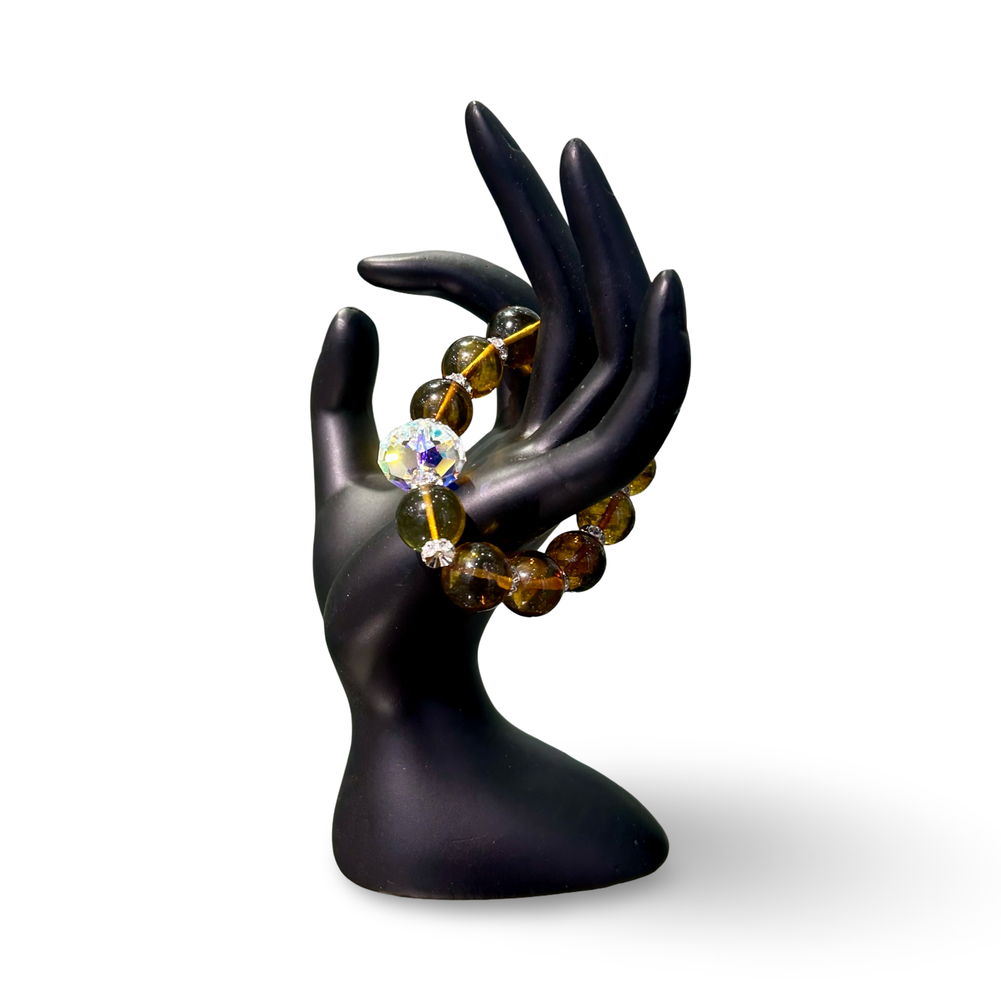 Elastic Amber Bracelet with Swarovski Crystal – 14mm Beads