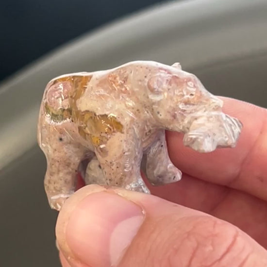 Fire Opal Bear Figurine with Fish – 21g, 2” x 1.5”