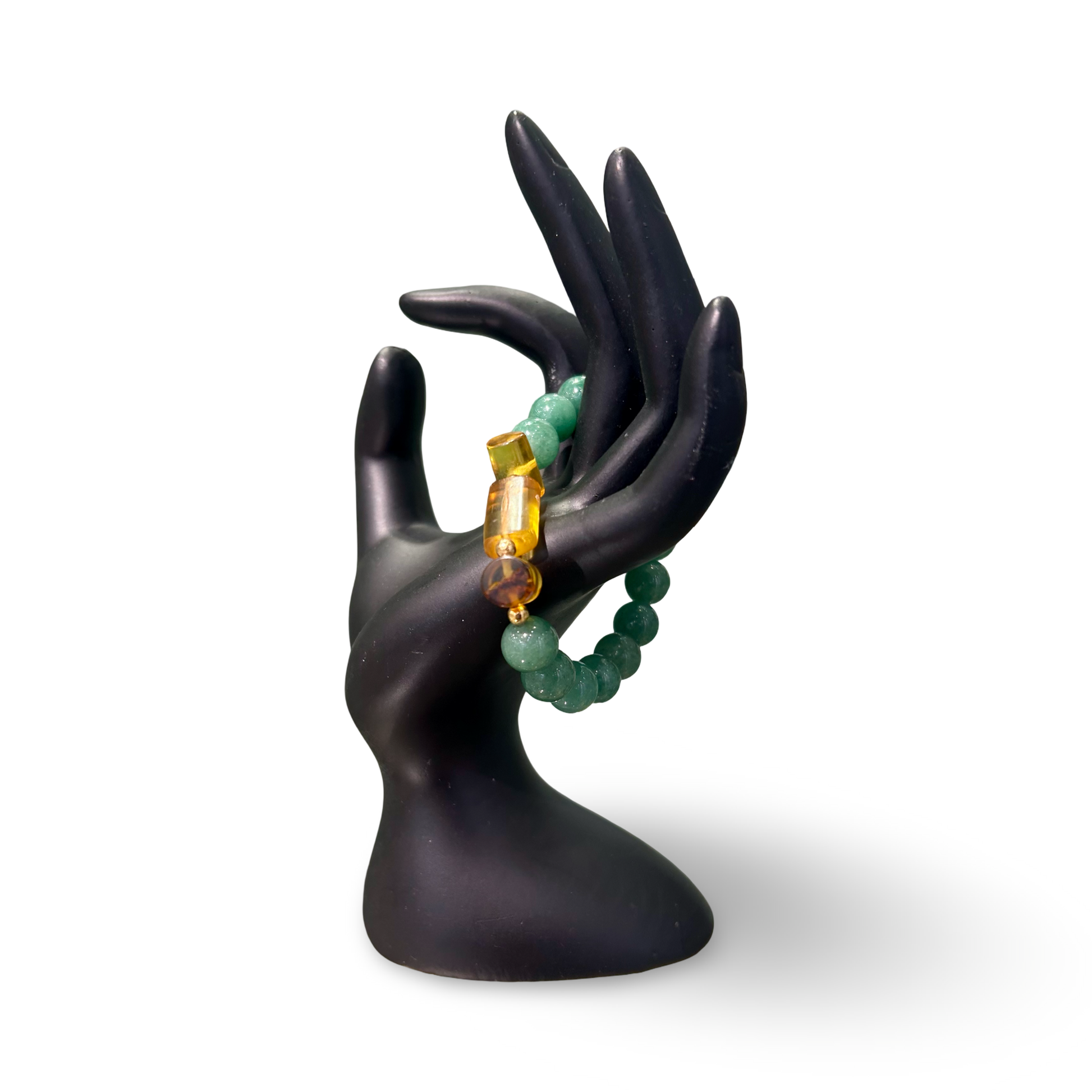 Green Aventurine & Colombian Amber Elastic Bracelet – 10mm