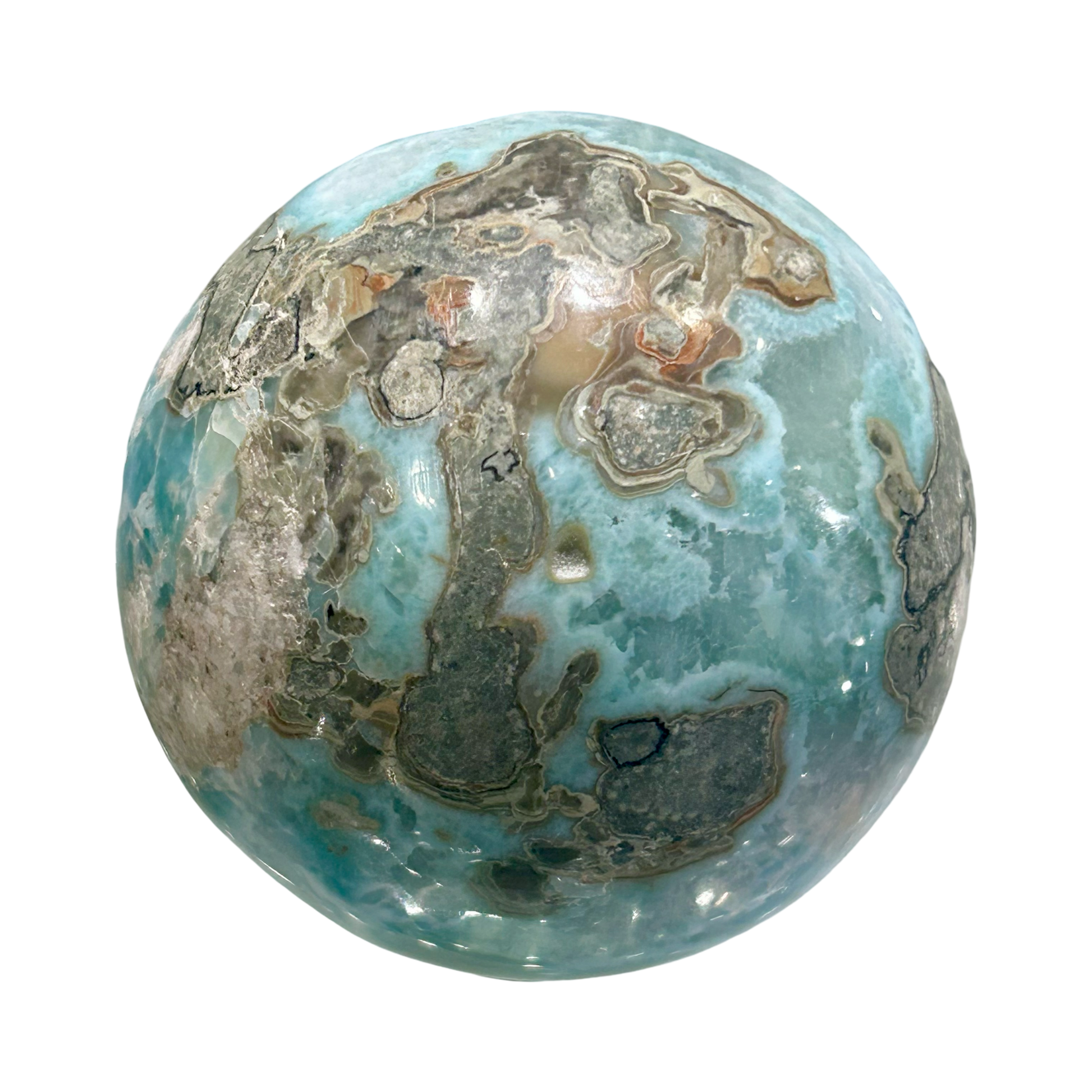 Larimar, also known as the Stone of Atlantis, is cherished for its soothing energy that promotes peace, communication, and emotional healing. Polished to a glossy finish, this sphere radiates calming energy from every angle, making it an exceptional addition to any crystal collection or sacred space.