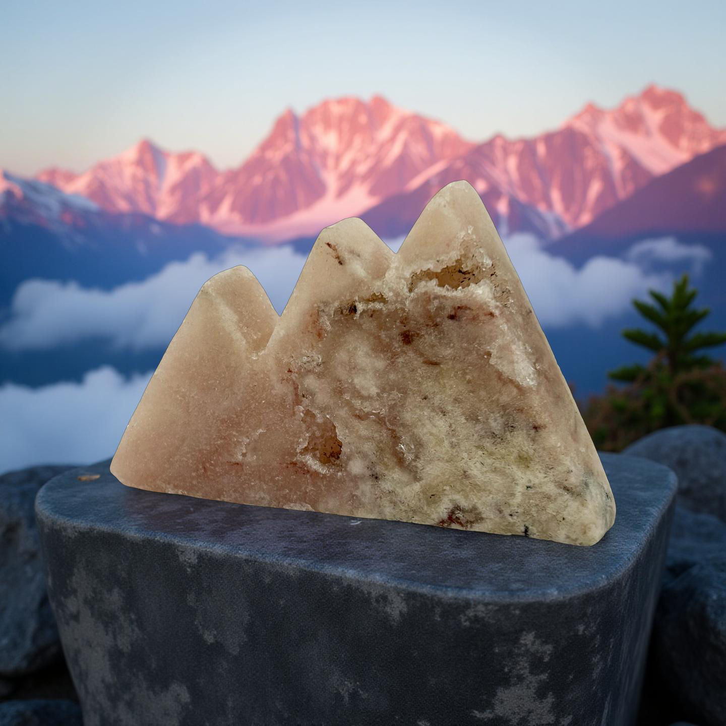 Bring the serene energy of the mountains into your space with these Pink Amethyst Mountain Carvings. Weighing 367 grams and measuring 6 inches by 1 inch, each piece showcases the natural blush hues of pink amethyst in a beautifully carved mountain shape.
