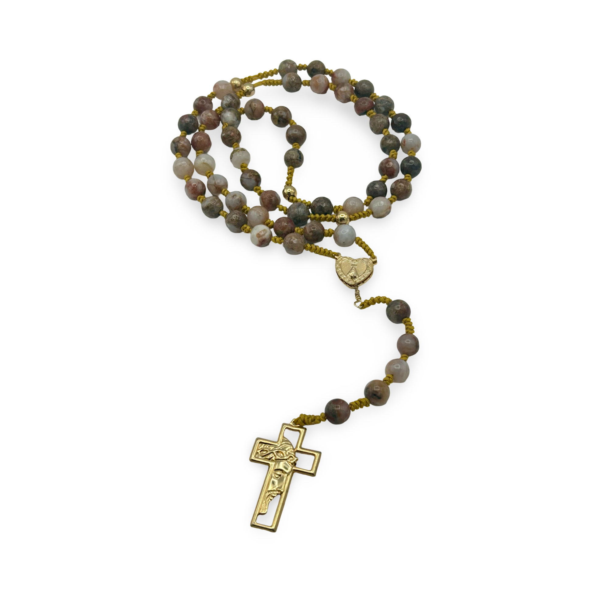 Sagenite & Jade Rosary – 8mm Beads, 18”