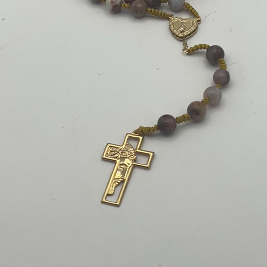 This elegant Sagenite and Jade Rosary features 8mm natural beads, measuring 18 inches in length. Sagenite is known for enhancing intuition and spiritual growth, while Jade promotes harmony, balance, and prosperity. Handcrafted with care, this rosary is a meaningful tool for prayer, meditation, or as a beautiful spiritual accessory.