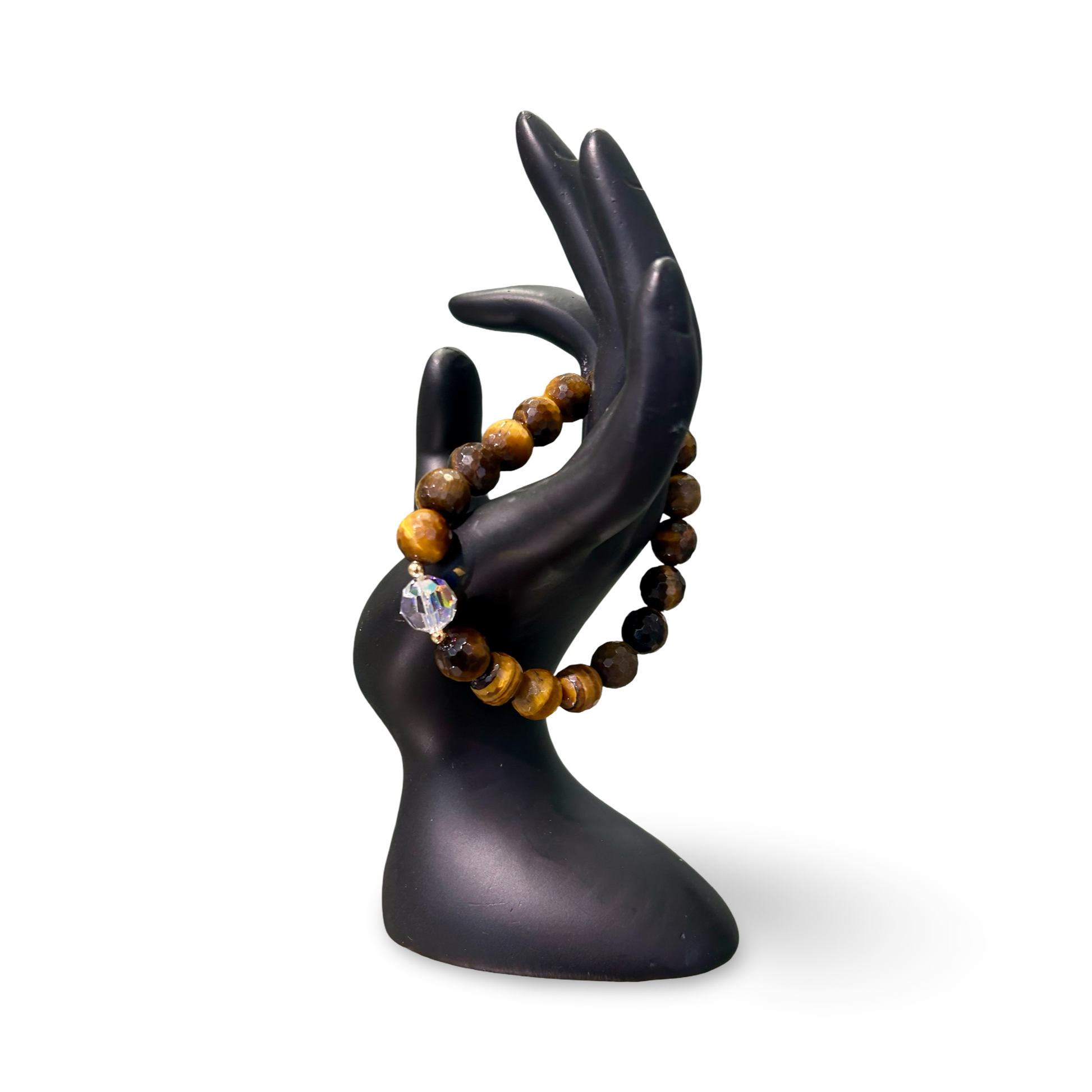 Add a touch of elegance with this handcrafted Tiger’s Eye bracelet accented with sparkling Swarovski crystals. Tiger’s Eye offers grounding energy and confidence, while the crystals bring a subtle shimmer, making it perfect for both everyday wear and special occasions.