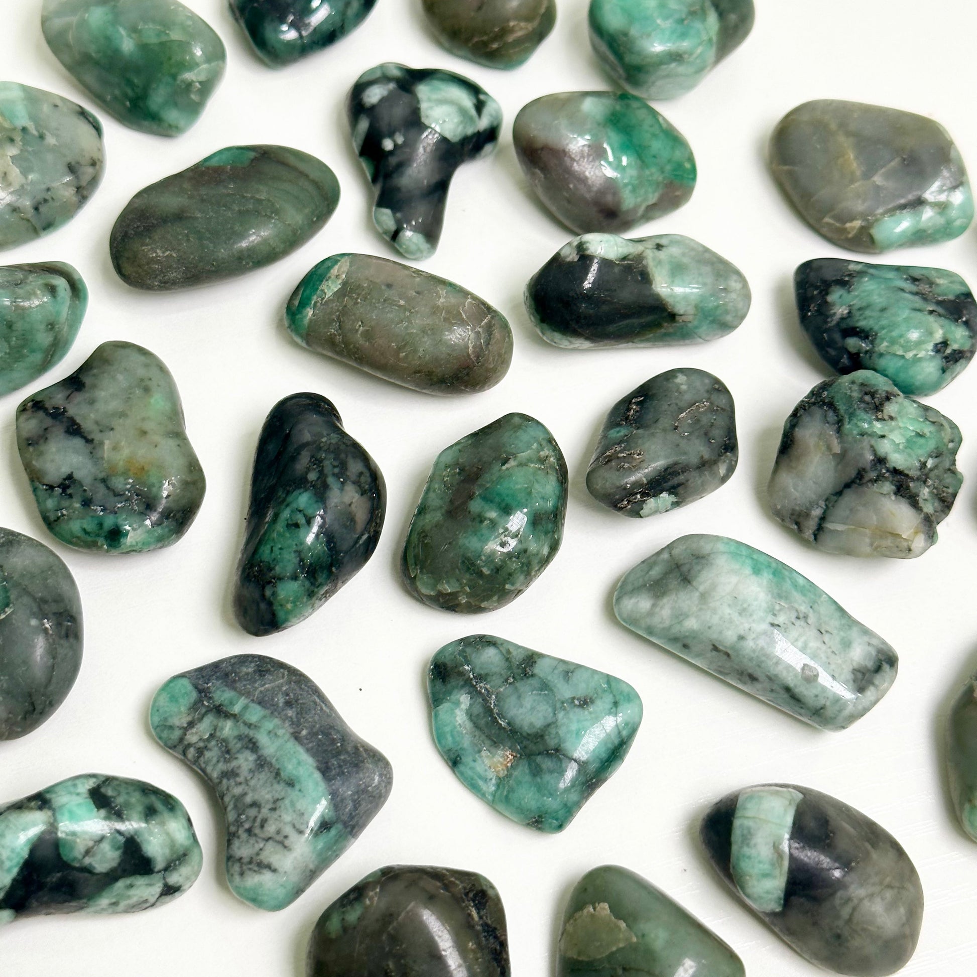 Emerald Tumbled Stones from Bahia, Brazil - Extra Quality | Wholesale Tumbled Stones