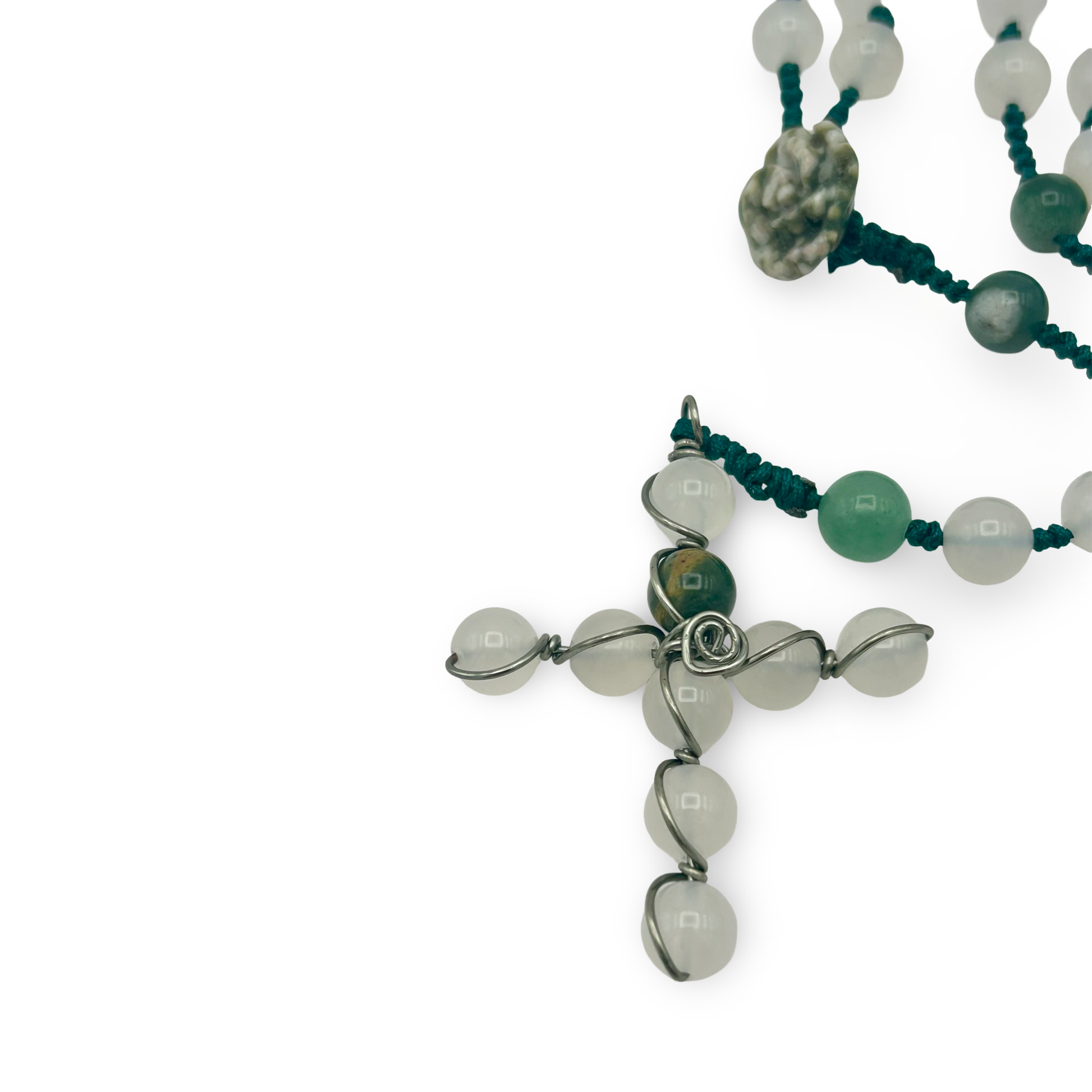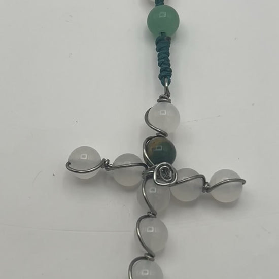 This elegant White Agate Rosary features 8mm smooth white agate beads, measuring 18 inches in length. White agate is celebrated for its grounding, protective, and balancing properties, making this rosary both a spiritual tool and a beautiful accessory. Handcrafted with care, it’s perfect for prayer, meditation, or as a meaningful gift.